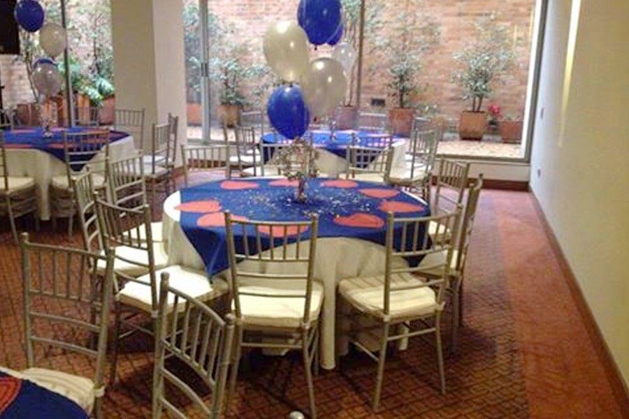 - Mesas y mesones para 4,6,8 y 10 personas.